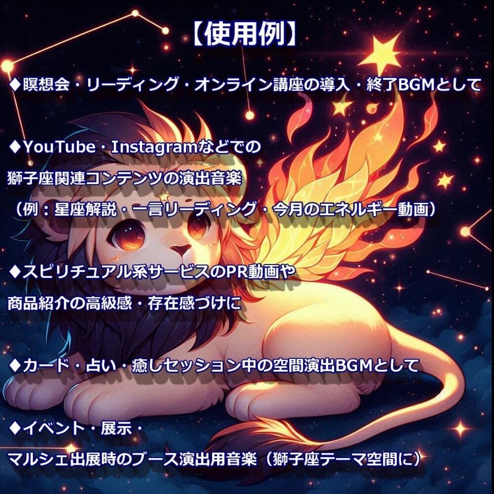 獅子座がもつ「自己肯定・創造・情熱・堂々とした輝き」を音で描いた、完全オリジナルのヒーリング楽曲です。
