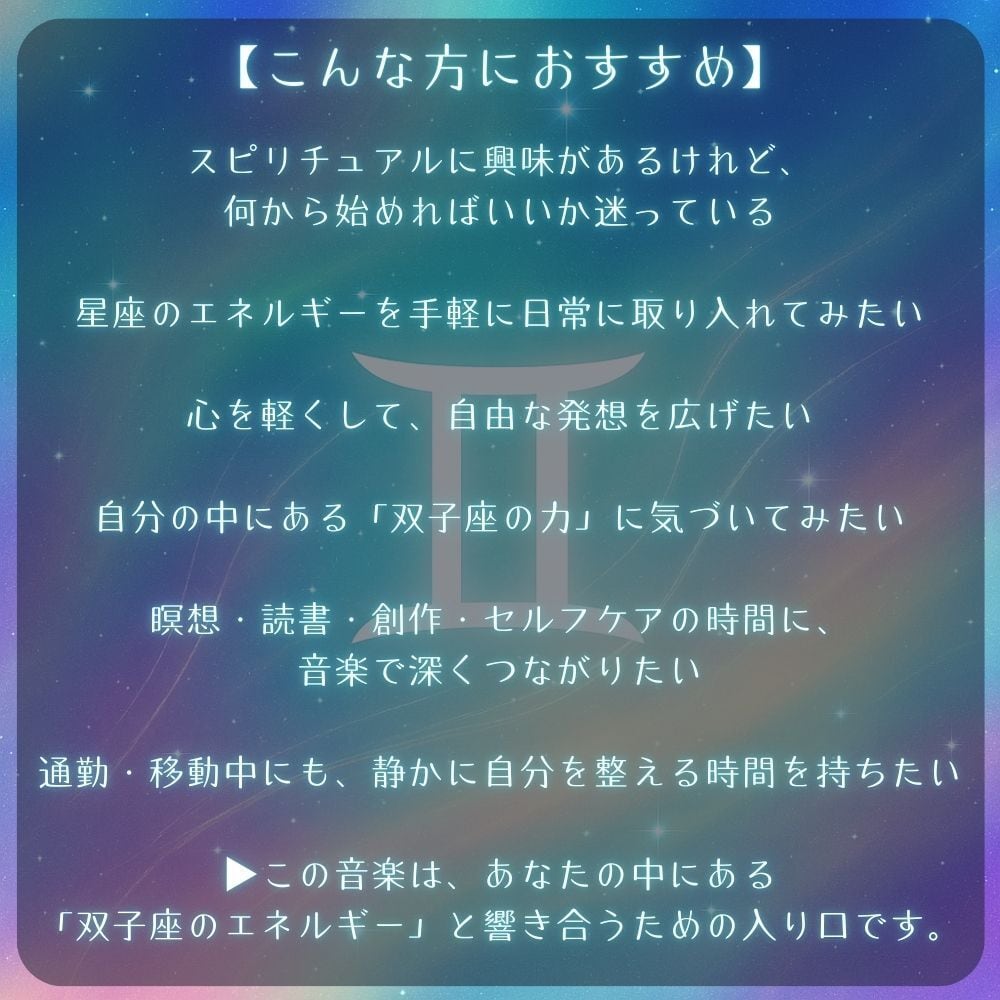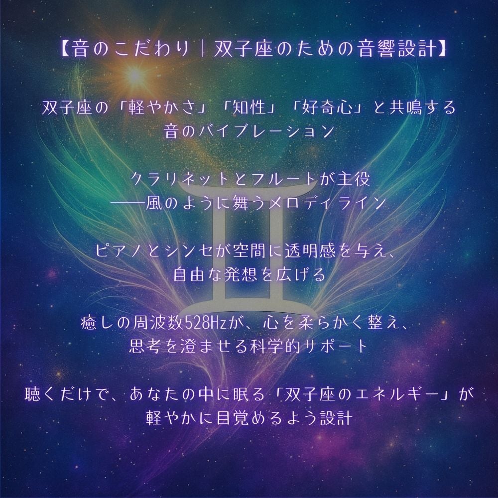 あなたの中に眠る「双子座のエネルギー」をやさしく活性化する音楽。