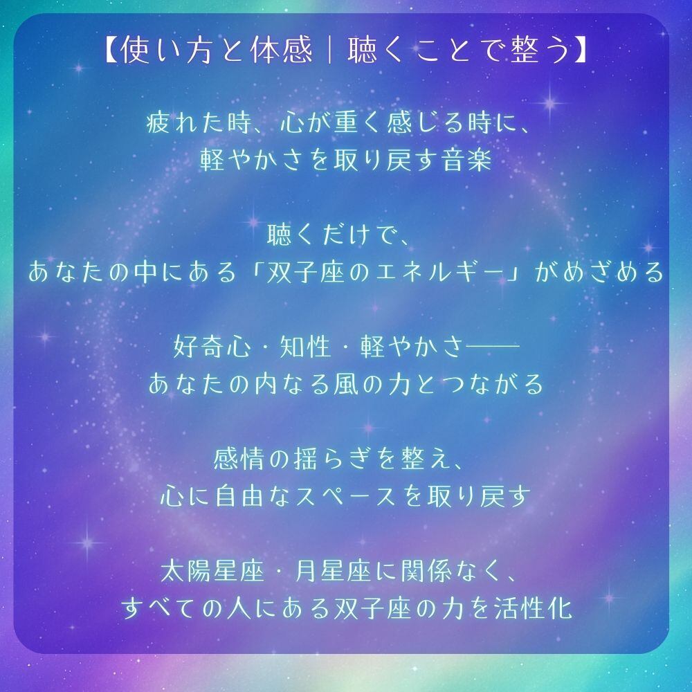 双子座のエネルギーとつながり、宇宙の愛と優しさを、まずは試し聴きしてみてください。