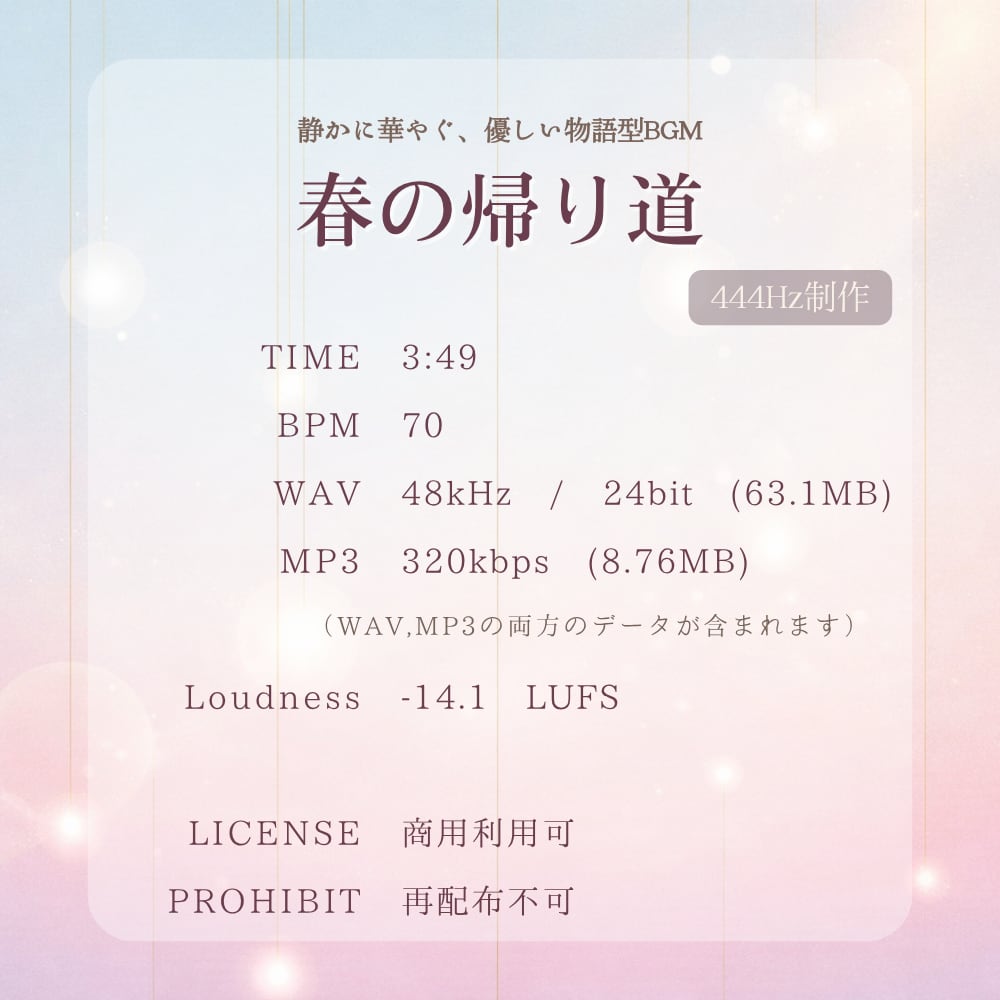 ・ 楽曲名: 春の帰り道(静かに華やぐ、優しい物語型BGM)