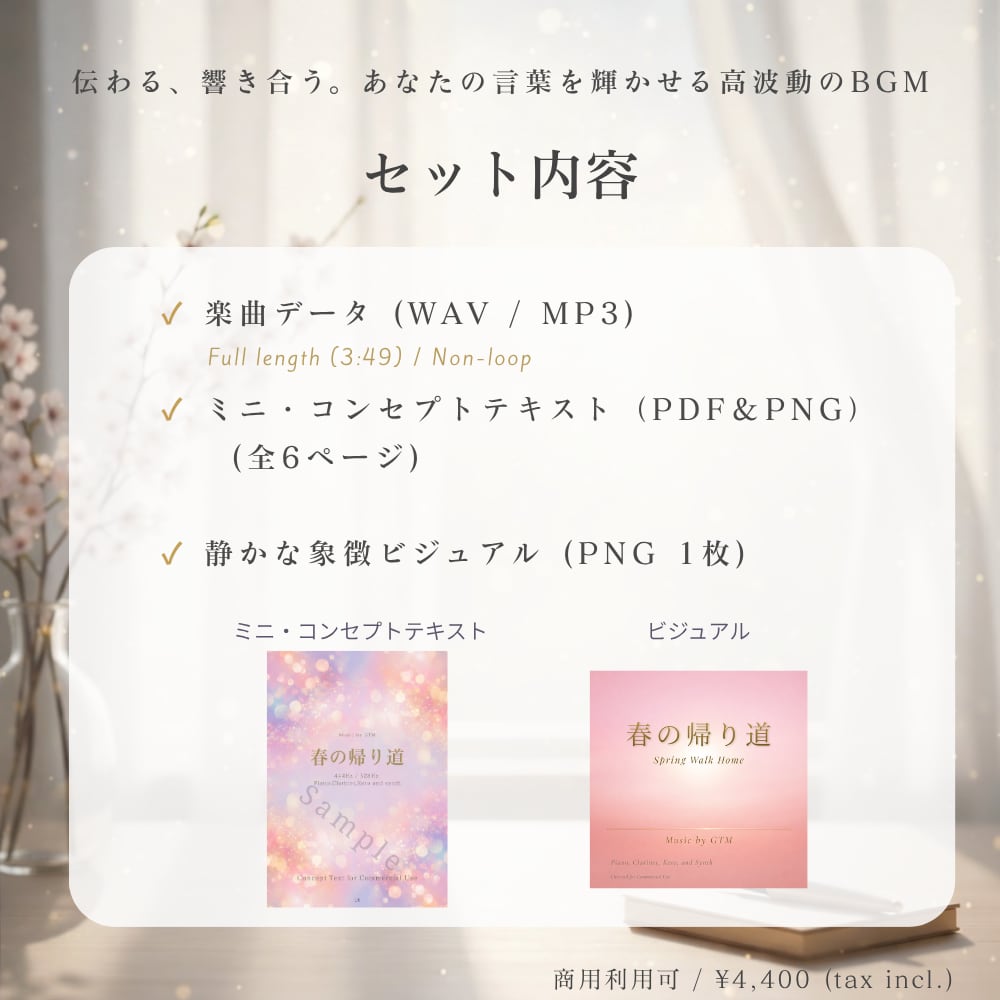 お仕事や活動用としてではなく、 自分へのプレゼントや日々の癒しの時間としてこの曲をお手元に置きたい方は、 ぜひこちらのページをご覧ください。